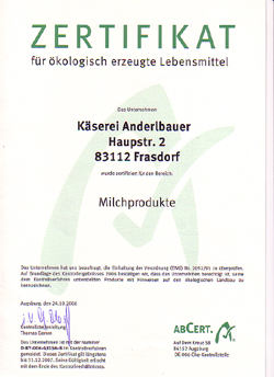 Zertifikat für ökologisch erzeugte Lebensmittel: Milchprodukte, Käse 2008 |