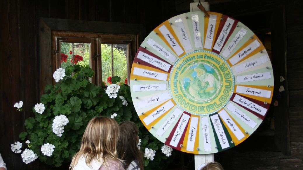 in Räume der Käserei zu wagen, bei einer Holzkuh die eigene Geschicklichkeit beim Melken zu testen oder beim
